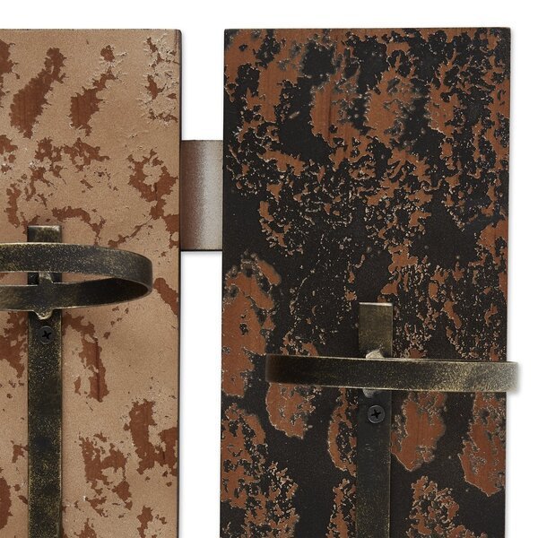 Unique wall-mounted wine rack holds four standard wine bottles upside-down in metal holders. Rustic wood adds charm to any space. Appearance of each one will vary slightly. 4.35 pounds. 22.75 x 5.13 x 15.75 inches tall. Fir wood with iron holders. Wine bottles not included.